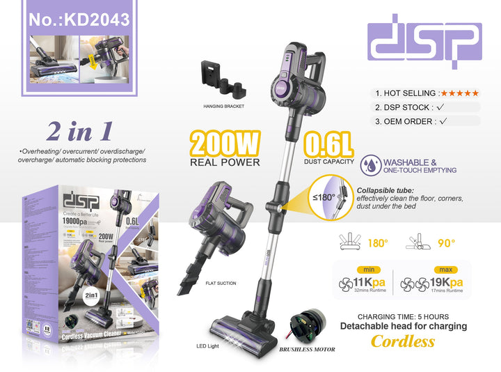 فرشاة أرضية مزودة بموتور LED يمكن استخدامها بزاوية 180 درجة، تجعل المكنسة تقف
