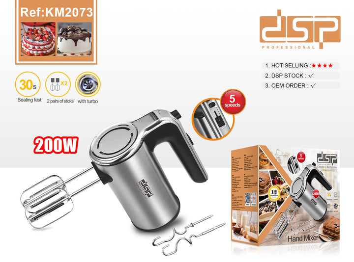 - الملحقات: مضرب البيض بطول 180 مم، مضرب العجين بطول 180 مم