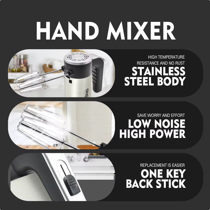 - 2 أزواج من مضارب الخلط وخطافات العجين المطلية بالكروم