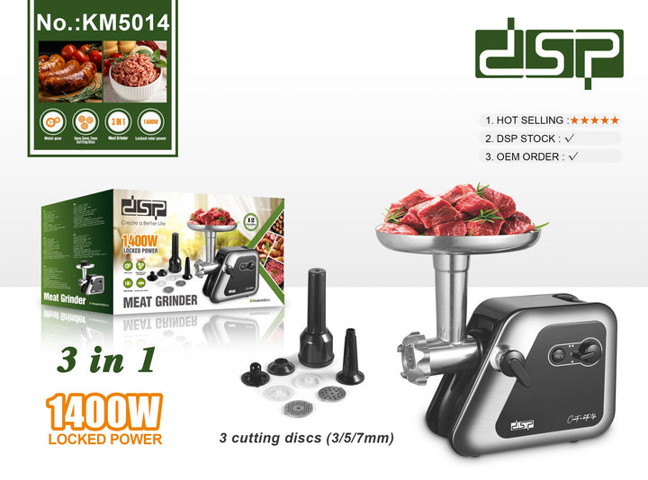 سرعة واحدة مع وظيفة عكسية: تسهل عملية الطحن وتمنع انسداد اللحم.